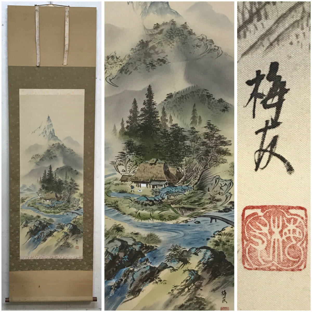 - FNY29/78【真作保証】長尾梅友『風水龍脈図』肉筆 日本画 絹本 掛軸 共箱 木箱 在銘 タトウ 山水 和風 インテリア◎