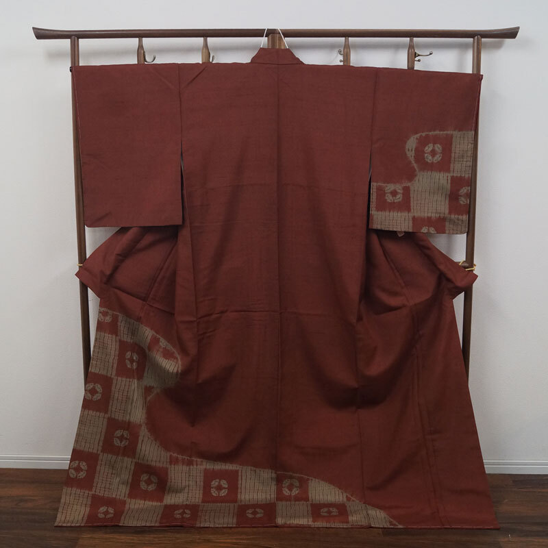 - ye64 付け下げ 着物 印あり 茶 染め 絞り 仕上がり品 和服 和装