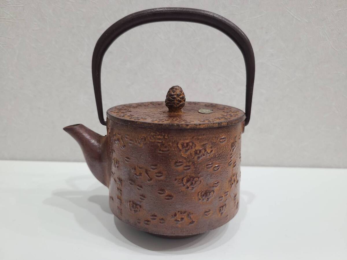 - SG1213 南部鉄器 盛栄堂 桜皮寸筒 鉄急須 菊 菊文 鉄器 鉄瓶 急須 茶器 錆あり 現状品 高さ 約8cm