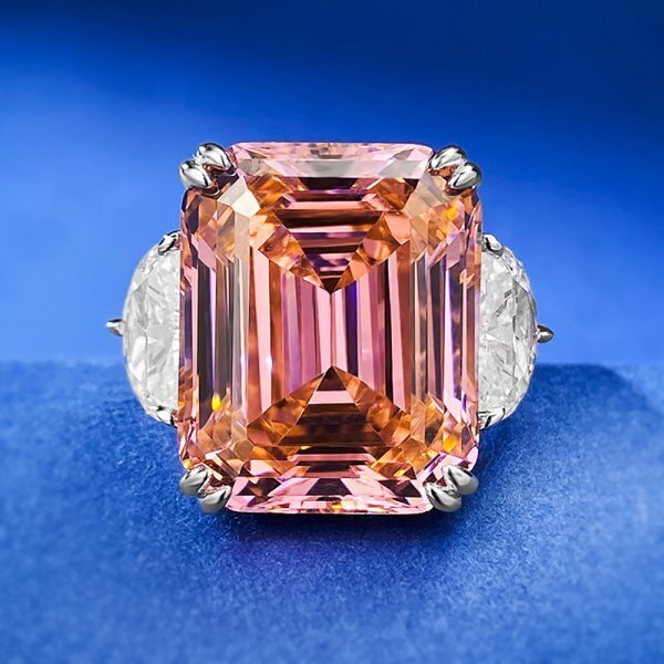 女性用ピンクオレンジトルマリンリング、13×16mm、925シルバー