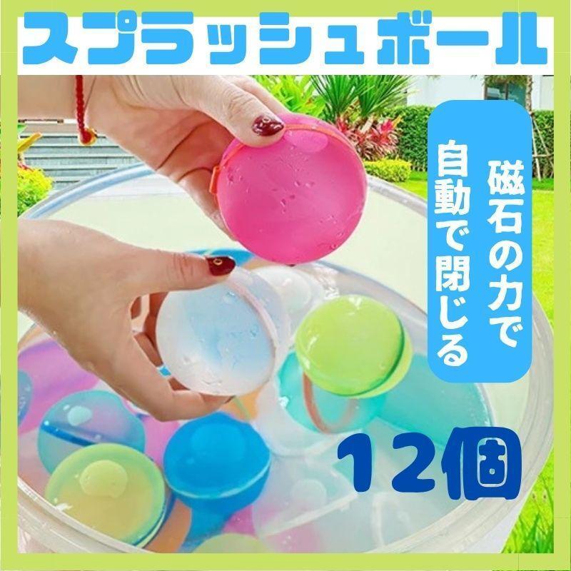 - スプラッシュボール 12個 マグネット式 水風船 自動給水 外遊び 割れない水風船 夏 シリコン製 安全 柔らかい お風呂玩具 子供