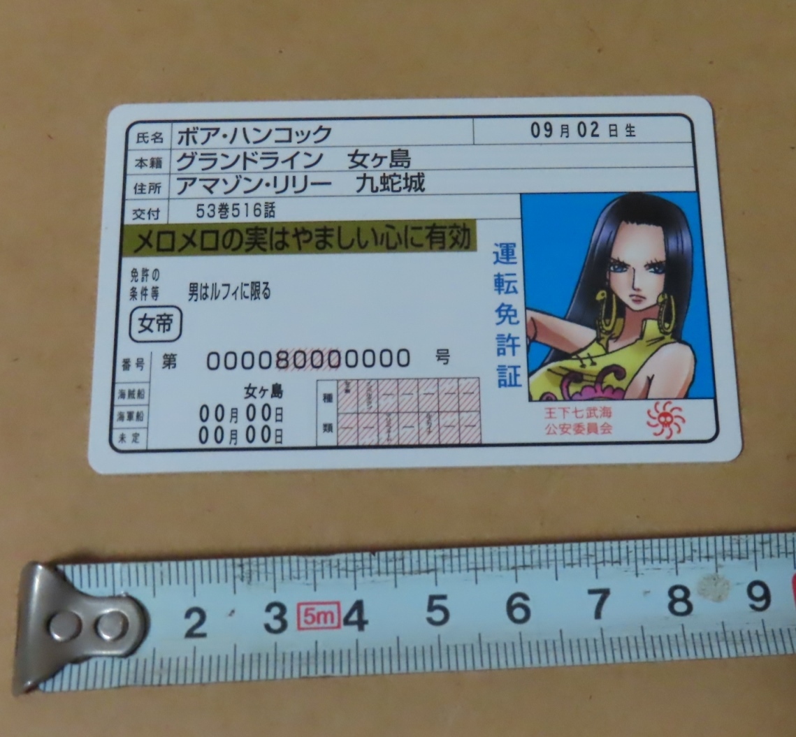- △▼当時物 カード/ボア・ハンコック■ワンピース パロディ免許証カード