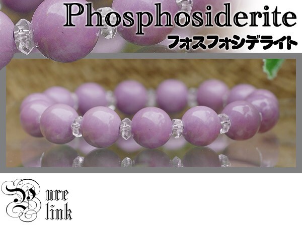 - 心を癒す紫の天然石*フォスフォシデライト10mm&水晶ブレスレット《パワーストーン/レディース》