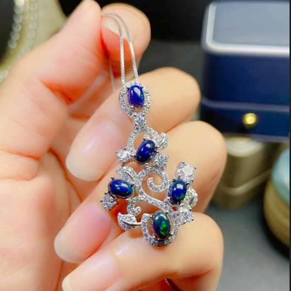 - 天然ブラックオパールペンダント、4x6mm、鑑別付き、残り時間4日までに最初に入札すると開始価格で購入可能 Yu