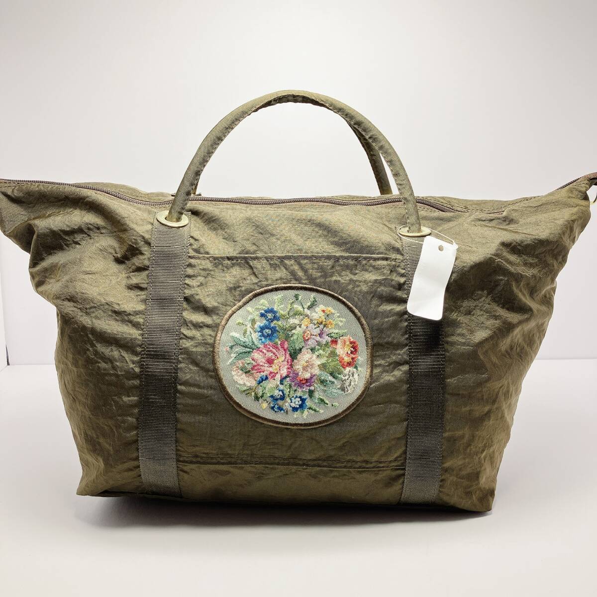 > 946○ Michiko kuge ミチコクゲ ハンドバッグ カーキ ブラウン グリーン 花柄 フラワー刺繍 ファスナー レディース ポケット 大容量