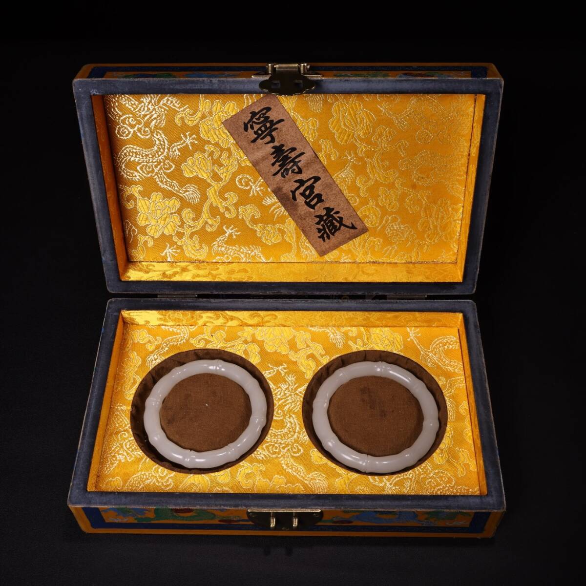 - 蔵友旧蔵出 和田玉製 細密彫 竹節腕輪一對 玉質細膩 盒付 希少珍品 貴重品 置物 古賞物 中国古玩 中国古美術品