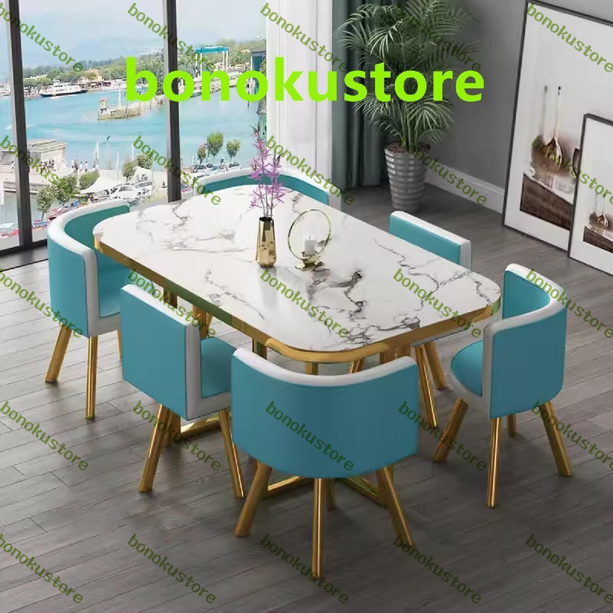 > ダイニングテーブルセット6人用 食卓セット 丸テーブル モダンデザインテーブルと椅子セッバックレスト付き 150x90x75cm
