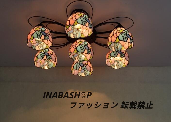 - 7灯★新品★高級感溢れる★ステンドグラスペンダントライト 豪華天井照明ステンドグラスランプ ガラス工芸品