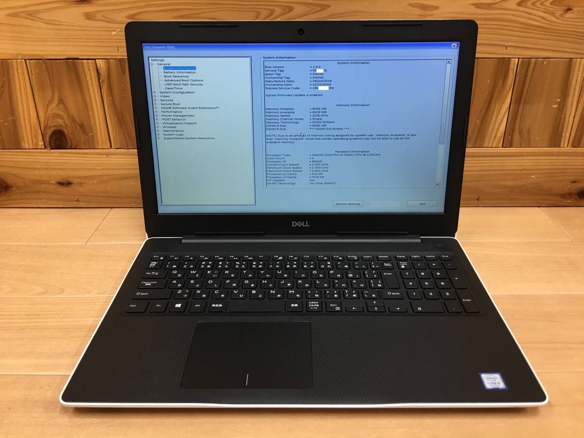 - A22883)Dell inspiron 3581 搭載Intel Core i3-7020 2.30GHz/8GB/HDDなし/DVDRW/無線/Bluetooth/カメラ/OSなし
