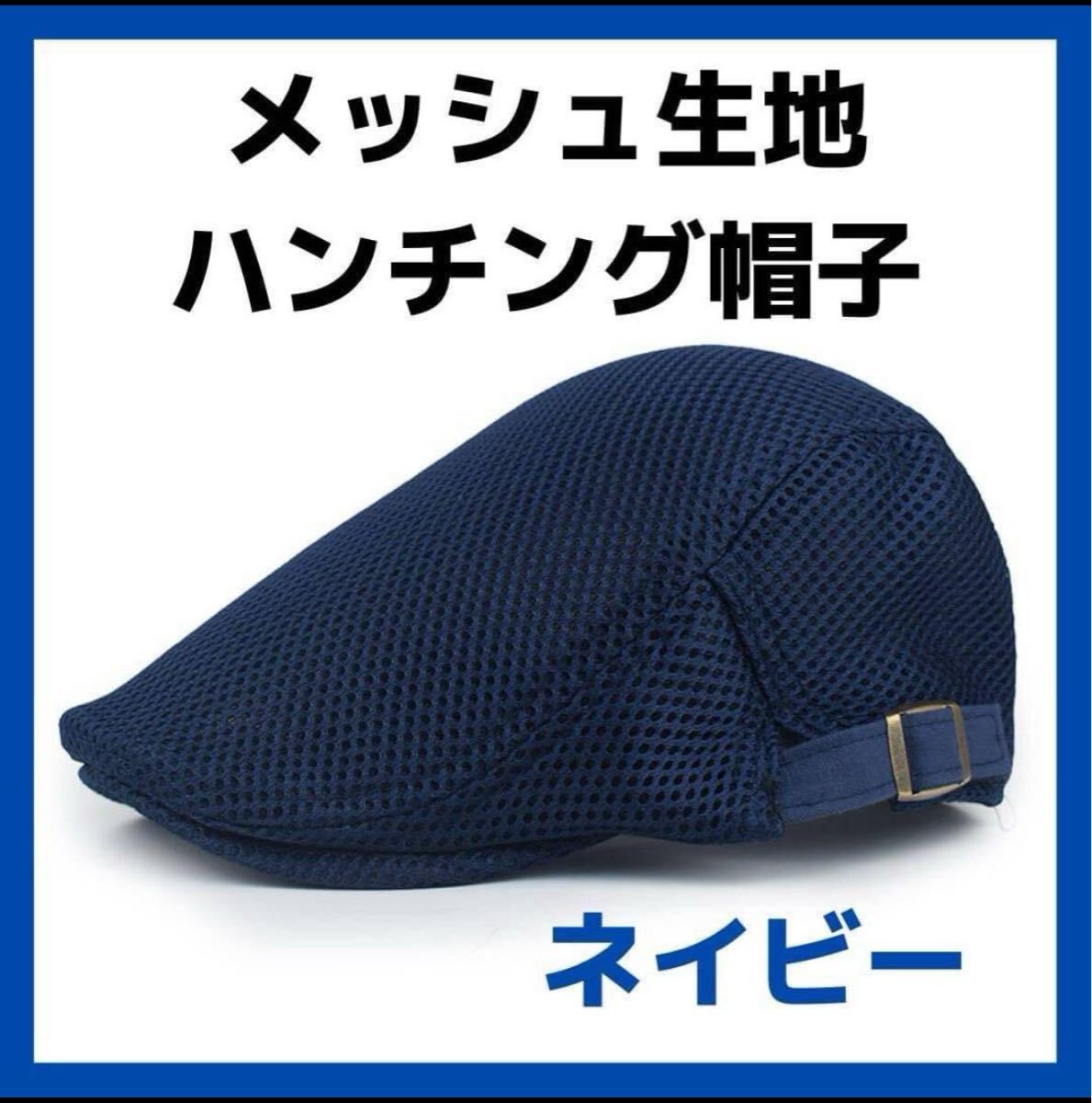 - 新品!ハンチング 帽子 メッシュ ネイビー キャップ サイズ調整 夏用 通気性 男女