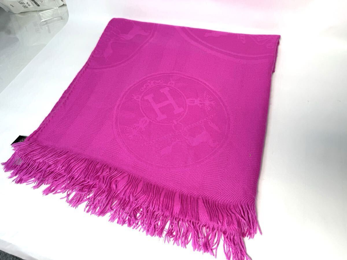 - 美品 エルメス HERMES タグ付 ETOLE NEW LIBRIS エトールニューリブリス ストール スカーフ カシシル カシミア シルク混 フリンジ 総柄