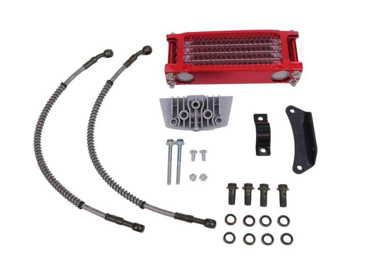 > ホンダ 用 オイルクーラー キット レッド 4段タイプ 冷却 ラジエーター モンキー ゴリラ カブ バギー ダックス シャリー 等 バイク 汎用品