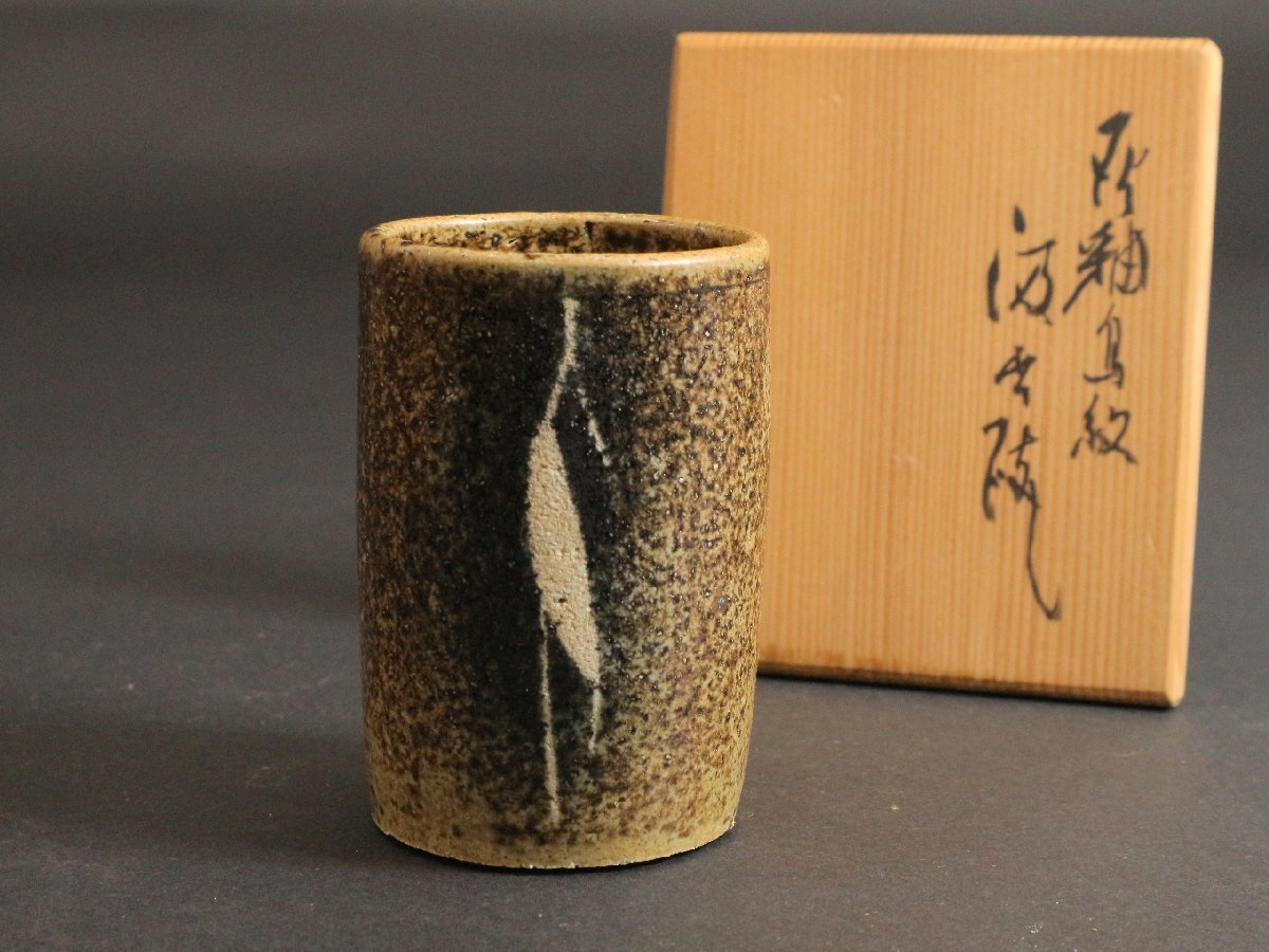 ・河本五郎 灰釉鳥紋 汲出碗 共箱 /湯飲み 湯呑 煎茶碗