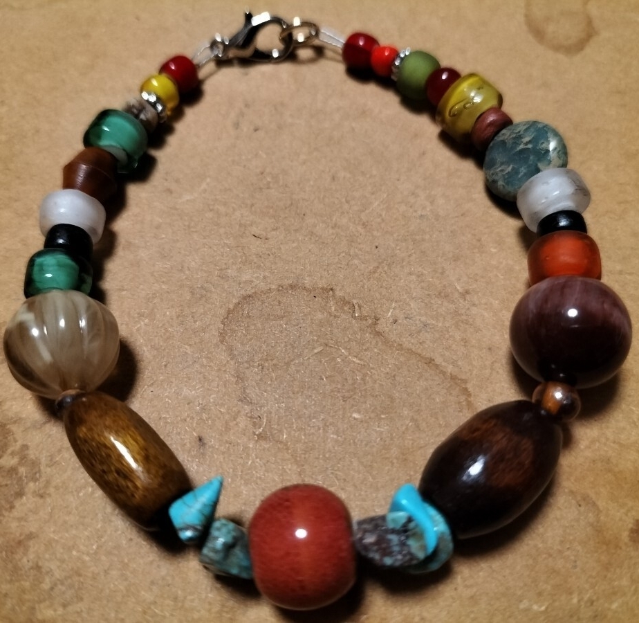 - ヴィンテージ インディアン ネイティブ ブレスレット とんぼ玉 天然石 ナバホ ズニ オールドビーズ 極太 ホワイトハーツ メキシコ バイカー
