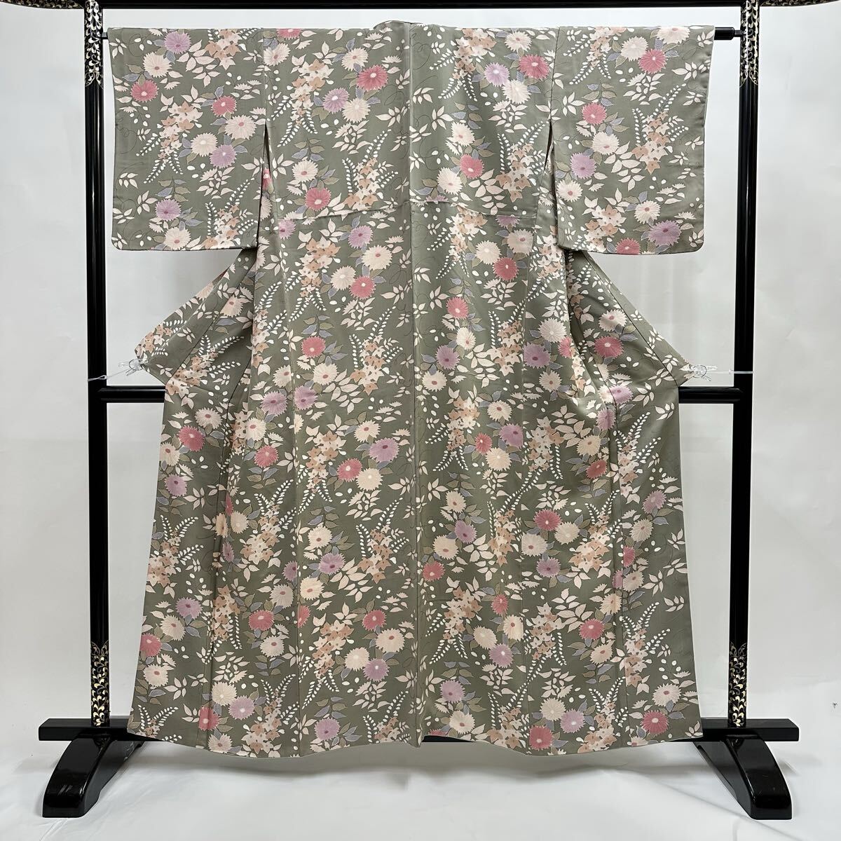 > 【七福】c785 正絹 小紋 地模様 織花 暗文 地文起こし 袷 着物 仕立て上がり 逸品 身丈 約157.5cm 裄 約63.5cm