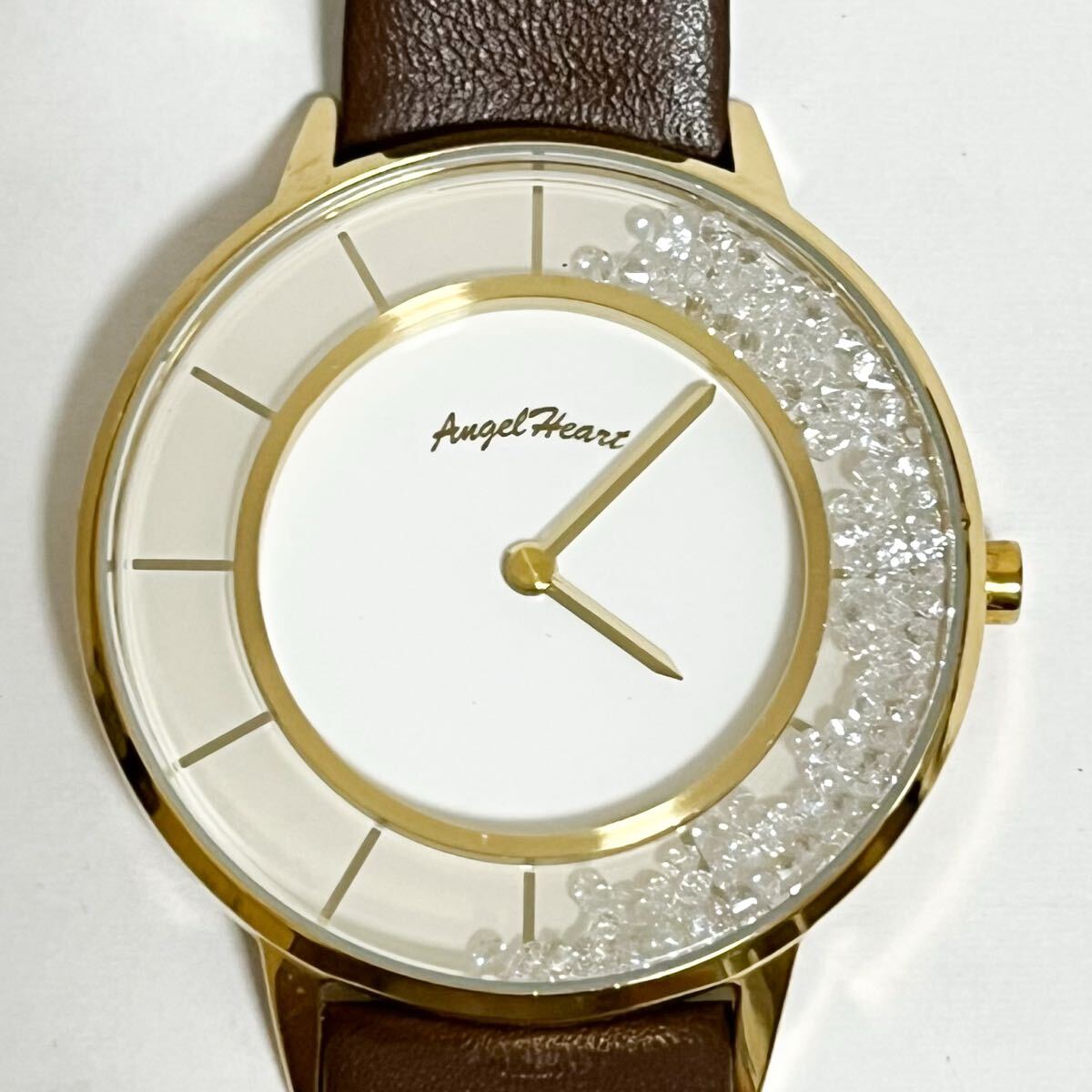 > 和822★ Angel Heart LG36 0245/1000 エンジェルハート クォーツ 腕時計 ウォッチ 2針 ホワイト レザーバンド レディース ラブグリッター