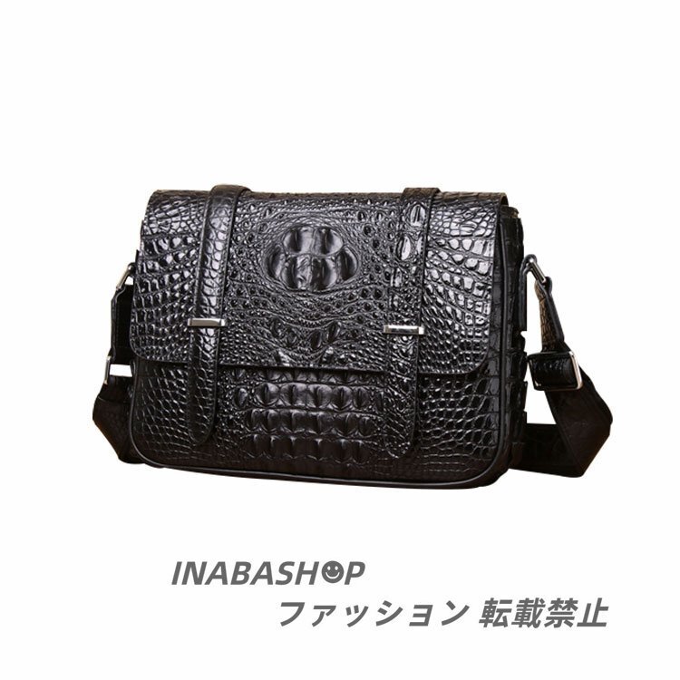 - クロコダイル革 ショルダーバッグ メンズ ポシェットメッセンジャーバッグ 横型 ワニ革 ビジネスバッグ 本皮 通勤 斜めがけバッグ