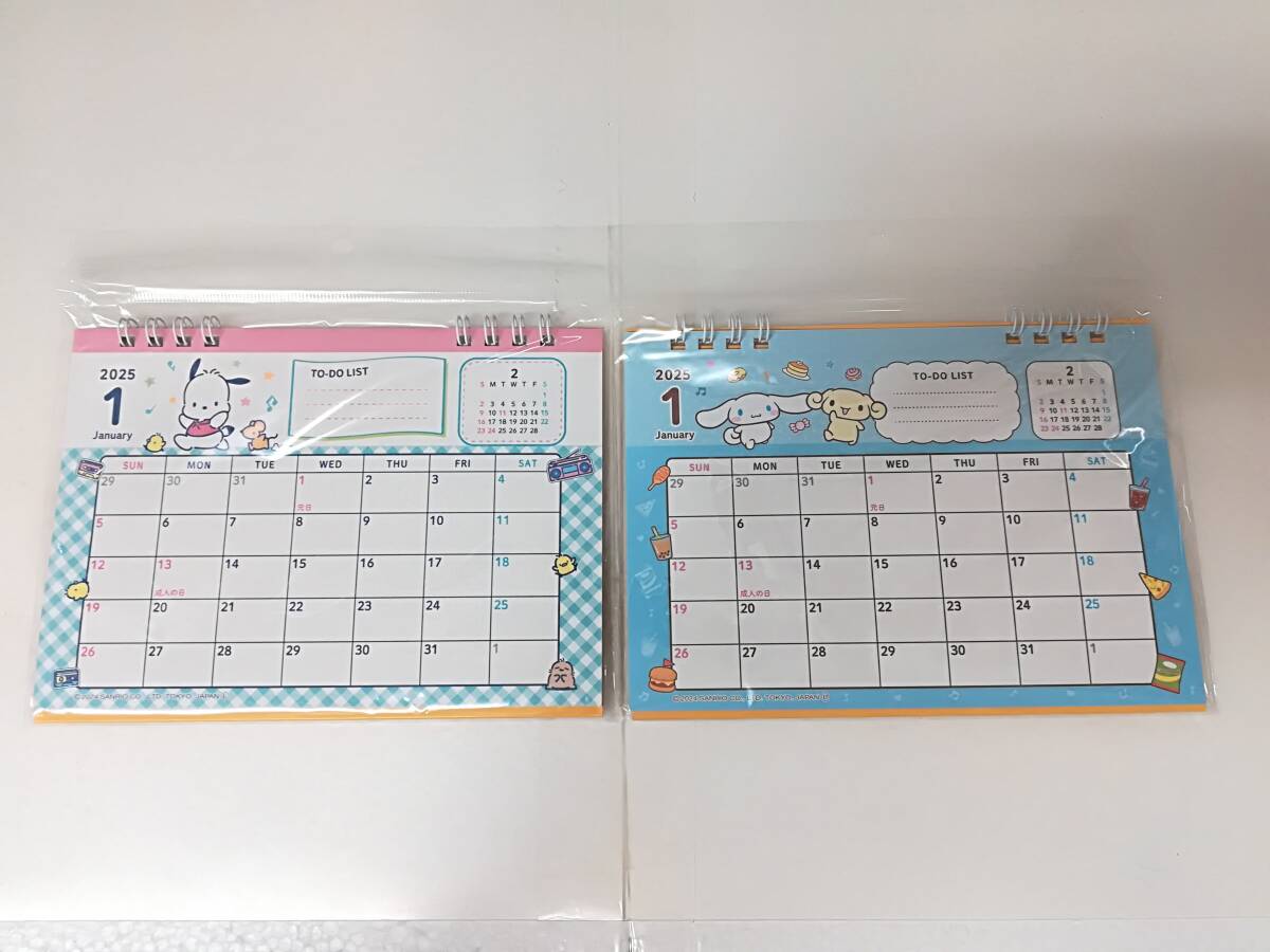 - ■未使用 サンリオ ポチャッコ・シナモロール 2025 卓上リング カレンダー 未開封 計2種セット