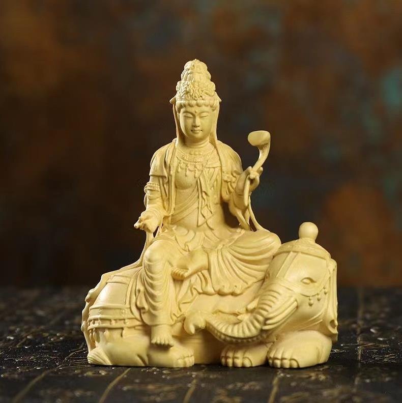 - 希少★ 普賢菩薩像 普賢菩薩 木彫り 仏像★招財開運★鎮宅辟邪★精密細工★黄楊木