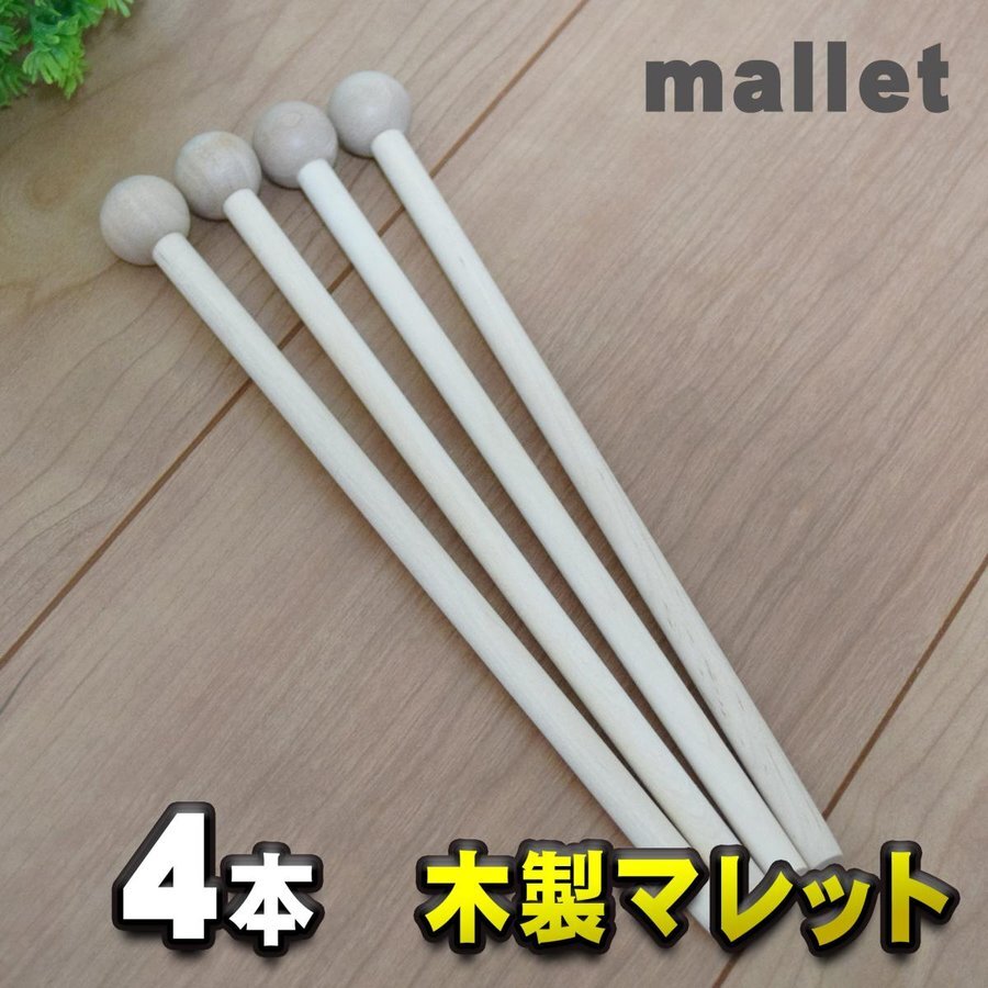 - 木製 マレット mallet チャイム/木琴/鐘/ウッドブロック/音叉/パーカッション などに最適 【4本】