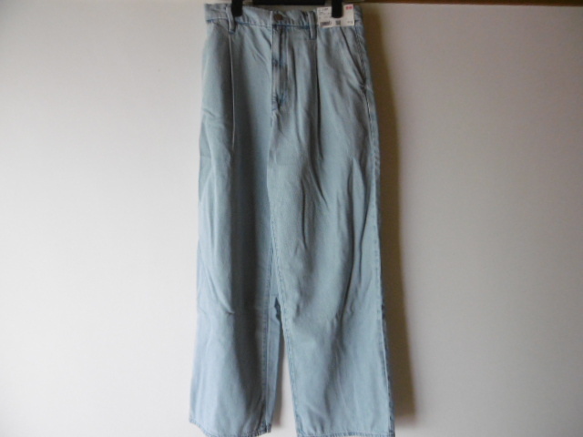 > 未使用 新品 ユニクロ ドレープデニムタックパンツ S 昨年 ウェストゴム 軽やかデニム ライトブルー 補正なし