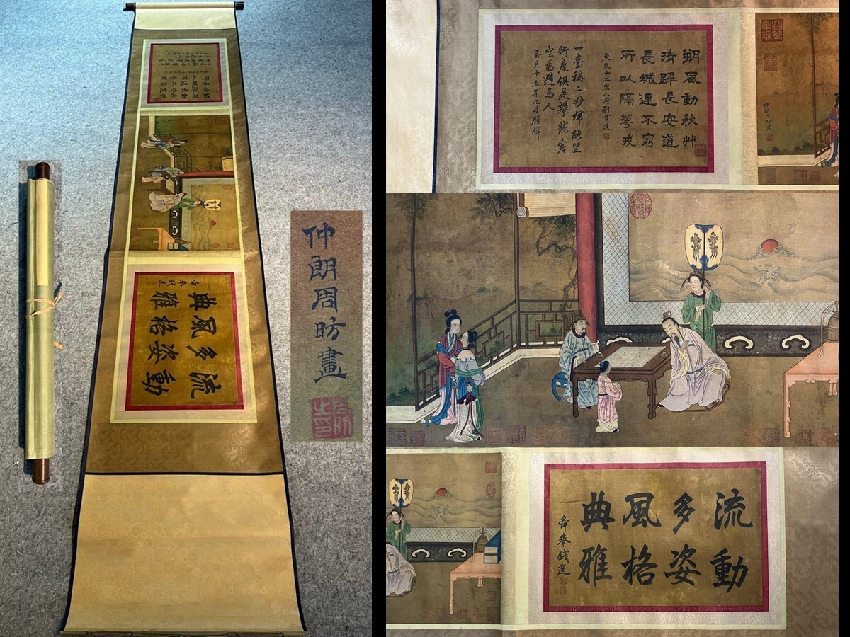- 中国書画「唐代 周昉 人物図長巻」肉筆絹本 掛け軸 墨寶妙品 書画横軸 巻き物 古美術 旧蔵出