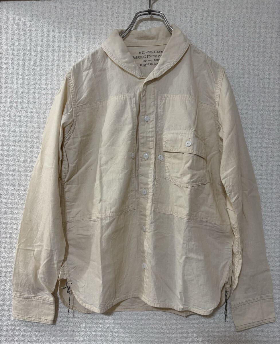 > SAMURAI FORCE PRODUCTS コットン シャツ オフホワイト Sサイズ アイボリー Made in Japan サムライ ジーンズ アメカジ ショールカラー 816