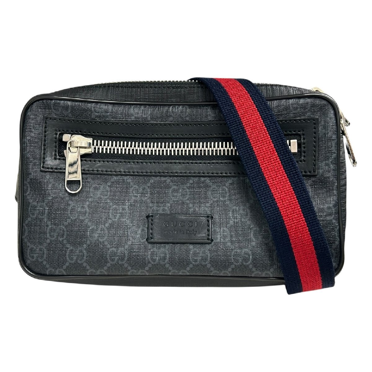 > GUCCI グッチ 474293 GGスプリーム ボディバッグ ベルトバッグ レザー ブラック系 メンズ 【中古】