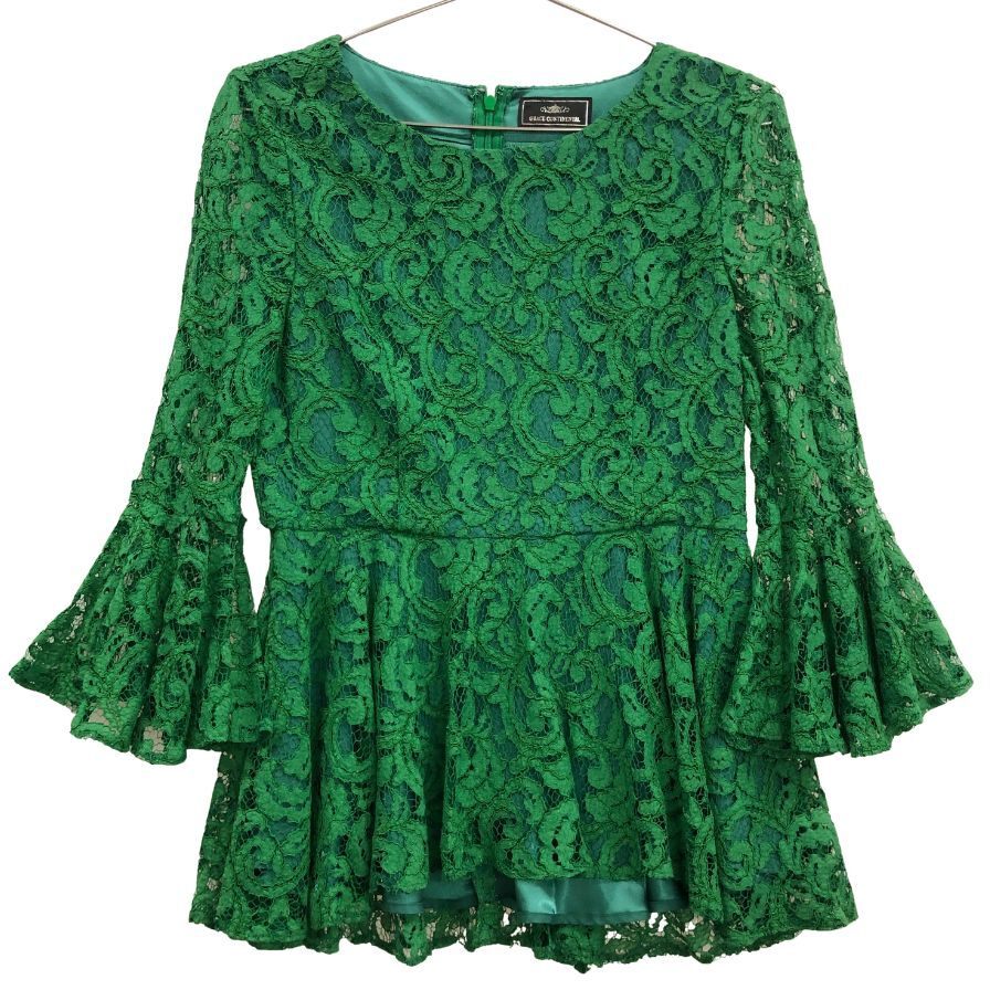 - 新品同様◆ワンピース グレースコンチネンタル ワンピース 長袖 レース チュニック レーヨン グリーン レディース サイズ36 【AFB8】