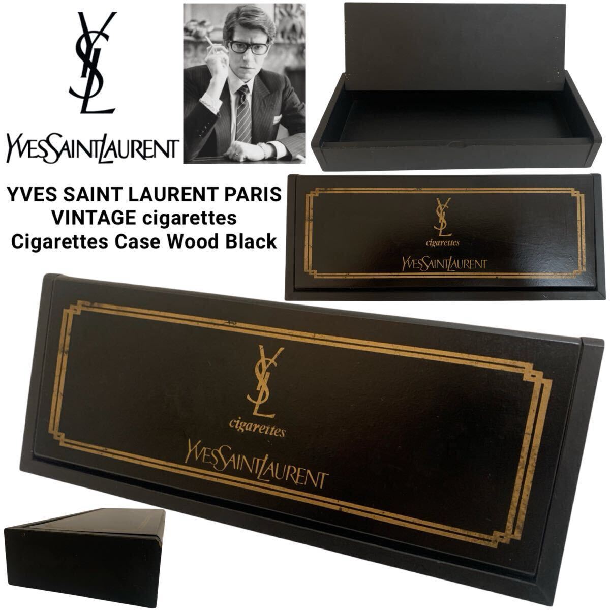 > YVES SAINT LAURENT PARIS VINTAGE イブ サンローラン パリス cigarettes シガレットケース タバコケース ウッド 木製 ブラック アーカイブ