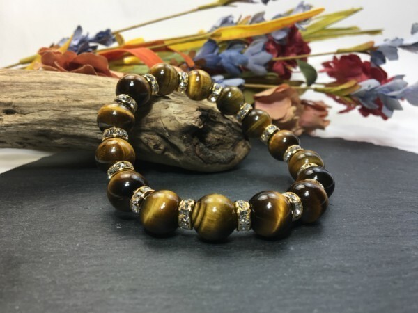 - パワーストーン ブレスレット タイガーアイ 12mm 天然石ブレス ゴールド 開運 金運 浄化 数珠ブレス メンズ 男性