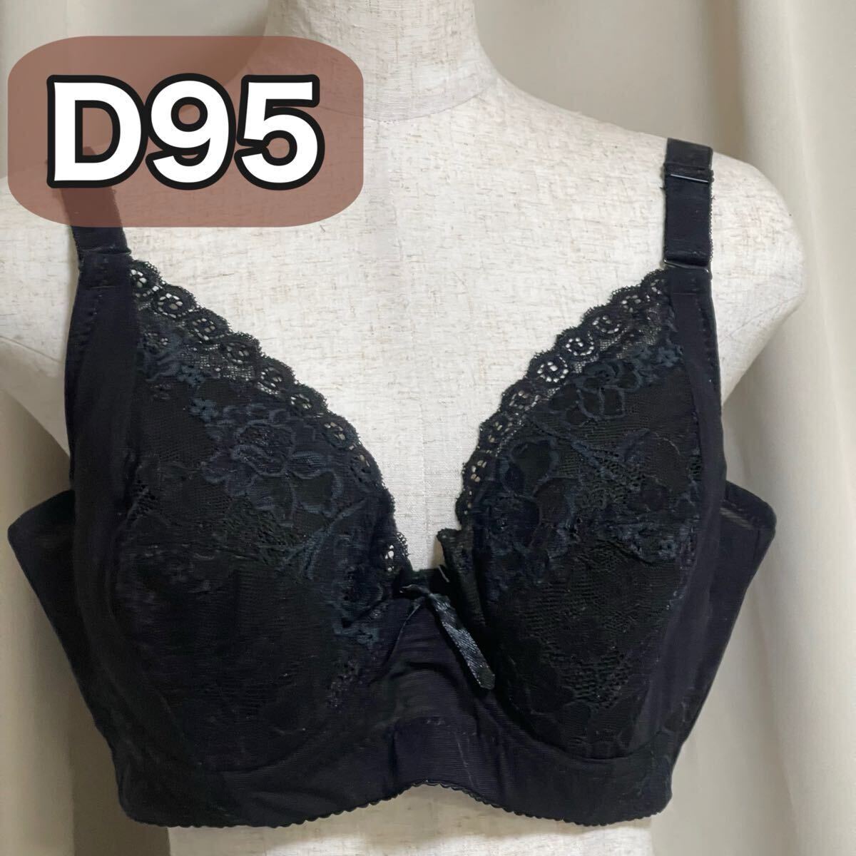 > ブラジャー フルカップ 4段ホック D95 Dカップ 95D 大きいサイズ プラスサイズ 下着 ブラック 黒 ブラ ワイヤー ブラ フルカップ