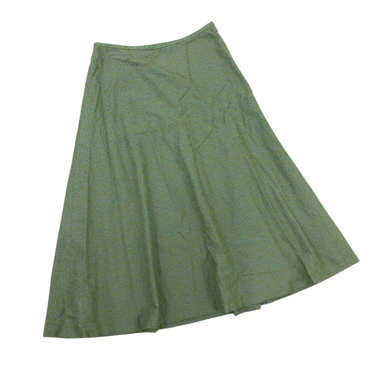 > Nm316-74 Sybilla シビラ リーフ 葉っぱ 総柄 刺繍 コットン フレアスカート スカート ボトムス グリーン系 レディース L 日本製