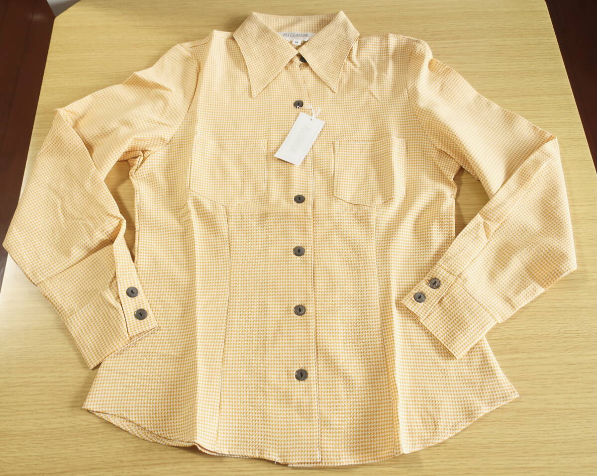 - ELLESAISON/エルセゾン★長袖立体シャツ【M】レディース・オレンジ千鳥柄 日本製・未使用