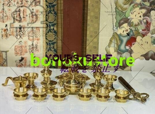 - 極上品 密教 法具 前具 ●金剛鈴/金剛盤 五鈷杵三鈷杵独鈷杵火舎香炉一面器六器一組仏器一対華瓶一対洒水器 全20種
