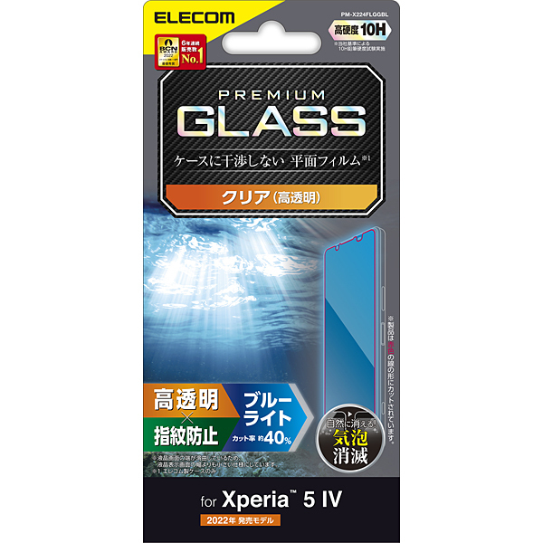 > Xperia 5 IV用液晶保護ガラスフィルム ブルーライトカットタイプ ブルーライトを約40%カットし、なめらかな指滑りを実現: PM-X224FLGGBL