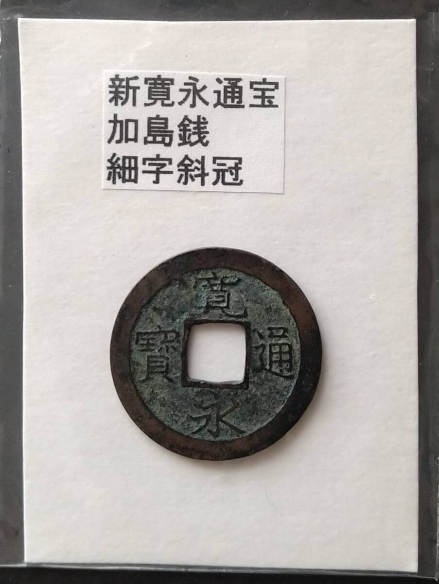 - 新寛永通宝・加島銭・細字・斜冠(1枚)
