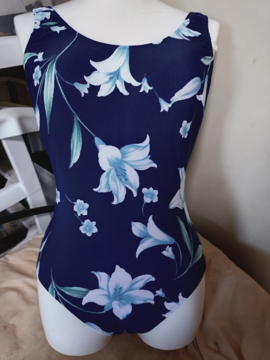 - M4427◆セレブなブルー系花柄ワンピース水着◆9М