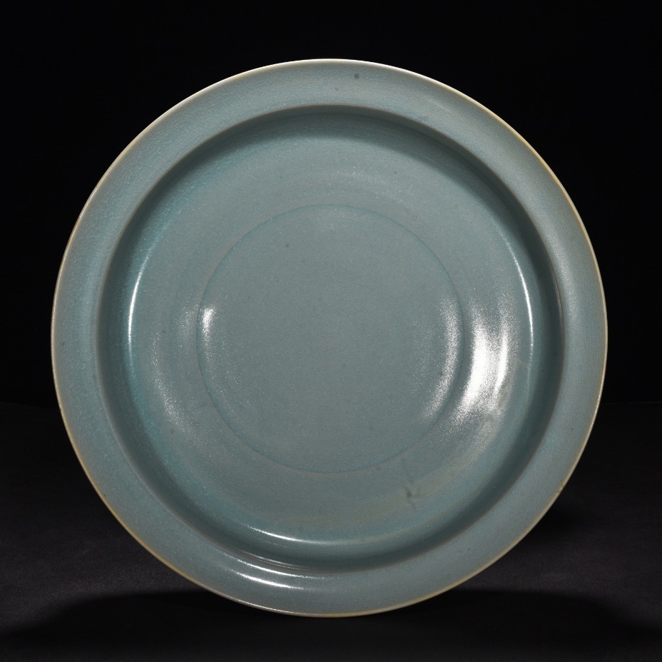 > 宋時代 汝窯天青釉 腰折盤 陶磁器 中国美術 唐物 古美術 置物 高さ7 cm 幅41.5 cm 818