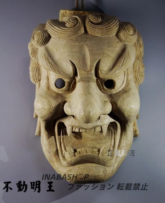 - 能面 手彫り 不動明王面 伝統芸能 工芸品 コレクション 壁掛 置物 マスコット