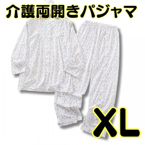 - 【介護士監修】シルク 介護パジャマ 上下セット 長袖 フルオープン着替え 花柄 通年用 花柄 入院 点滴 術後 授乳 身体検査 XLサイズ