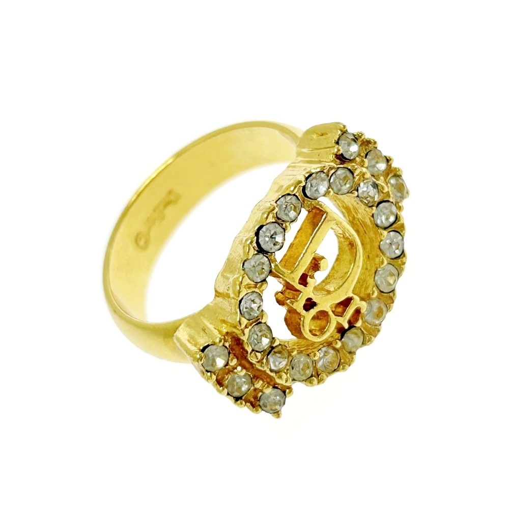 > Christian Dior クリスチャンディオール GP ラインストーン Diorロゴ リング ゴールド 404035 リング・指輪