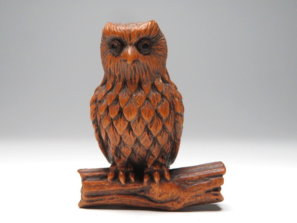 - 【11386】明治期 堤物 木製 梟 根付(初品・買取品)