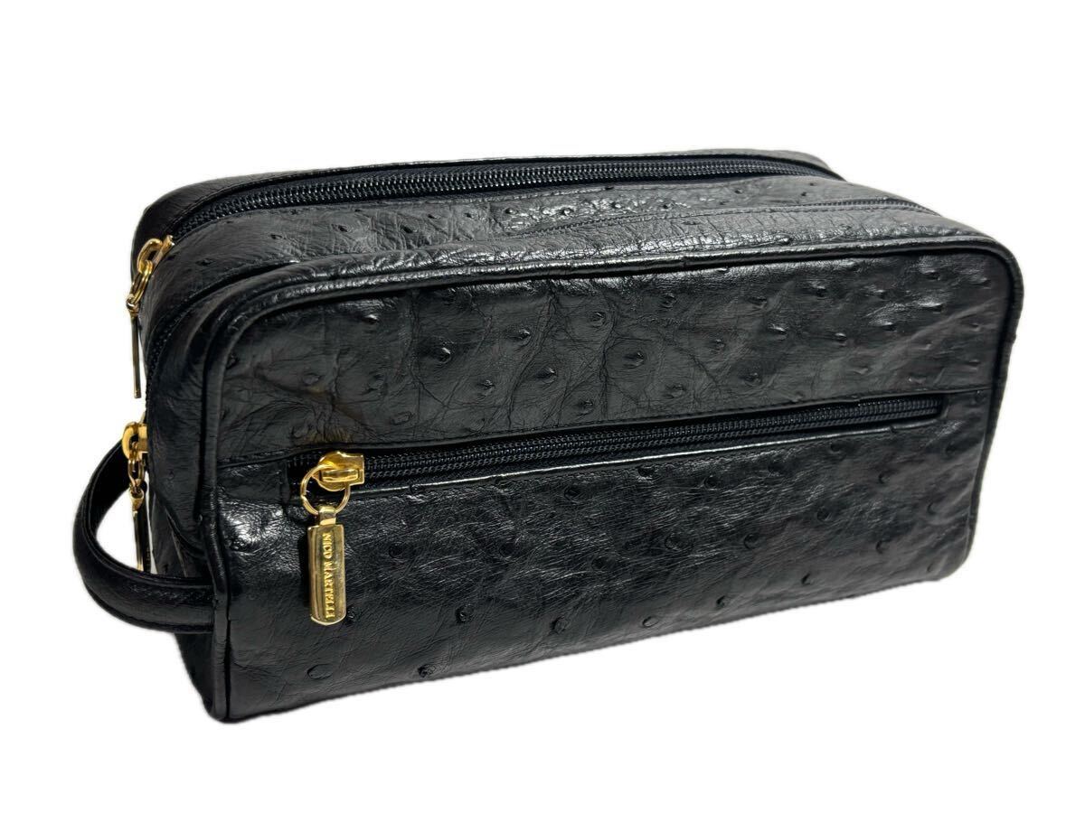 - ニコマルテッリ NICO MARTELLI ブラック セカンドバッグ オーストリッチ ストラップ収納可 【未使用に近い】