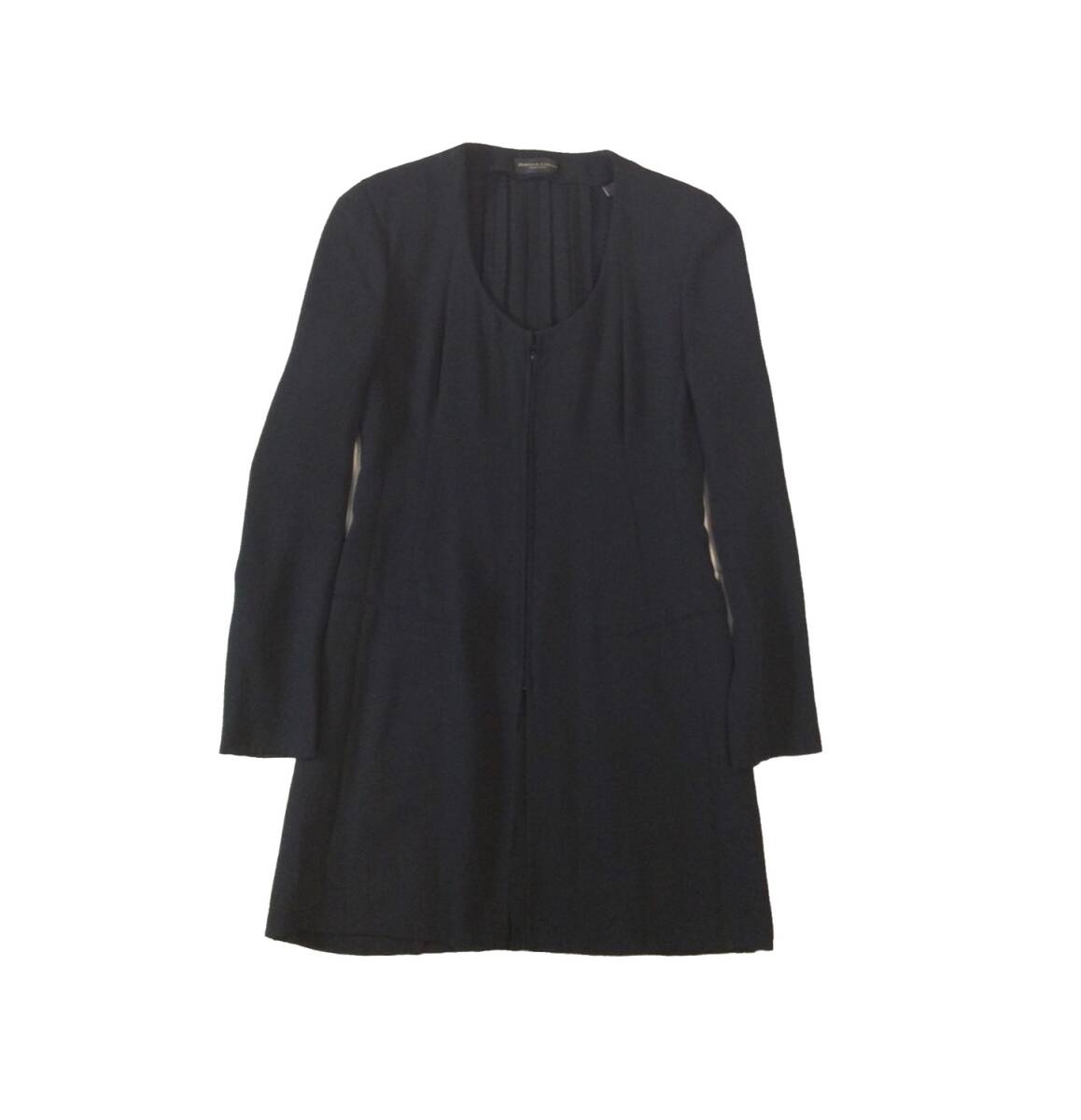 - ダナキャラン ニューヨーク トートバッグ DONNA KARAN NEW YORK USA製 ノーカラー ロング ジャケット フルジップ コート 黒 ウール 4