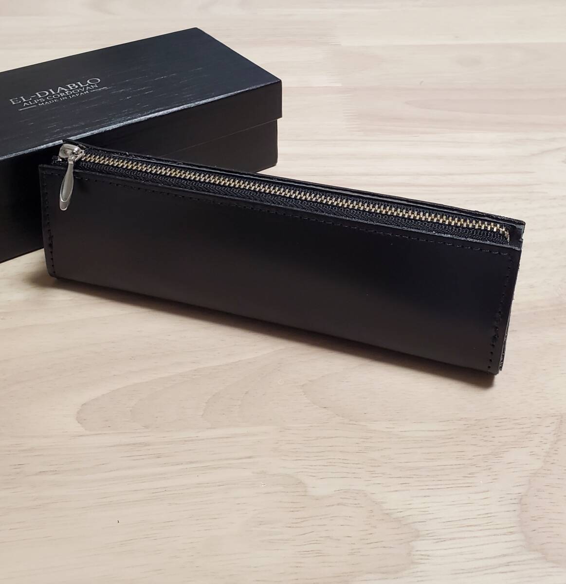 > 新品 未使用 美品 EL-DIABLO ペンケース 筆箱 メンズ 本革 革 コードバン 栃木レザー 牛革 日本製 ブラック ネイビー ブルー 黒 青 紺