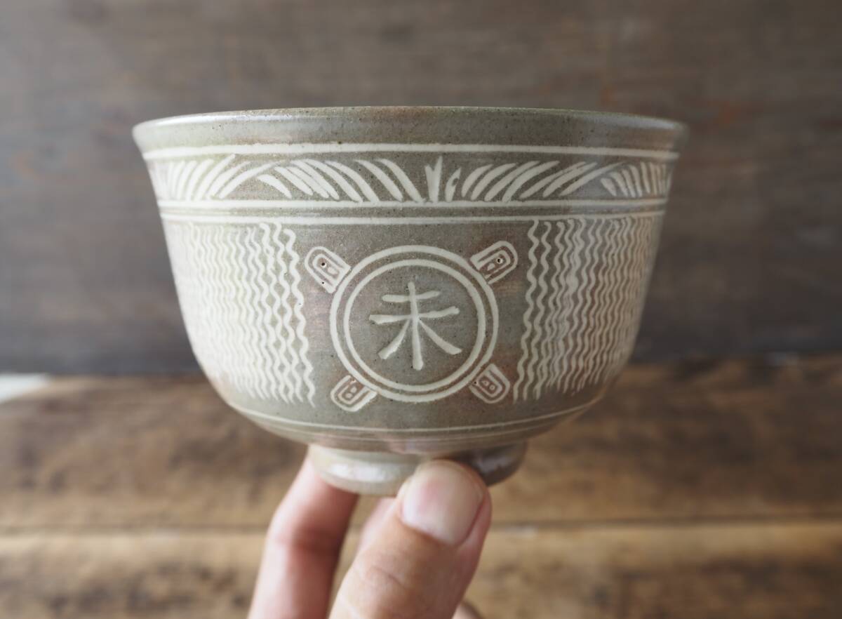 - 【OAN】 楽山窯 清水比呂志 三島茶碗 在銘 共箱付 古美術 古道具 民藝 古民藝 茶道具 懐石 古玩 作家物 在銘 抹茶碗 無傷 E25840