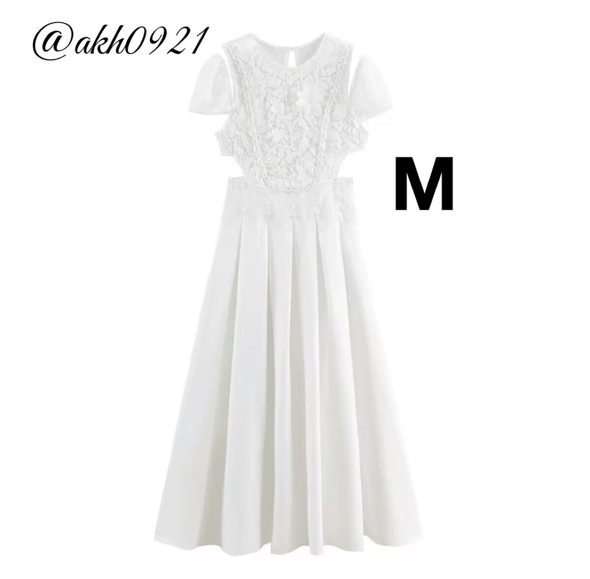 - 新品未使用★2025 夏新作★vintage ヴィンテージ レトロ white レース ロング ワンピース ドレス Mサイズ レディース★ZARA 好きな方に