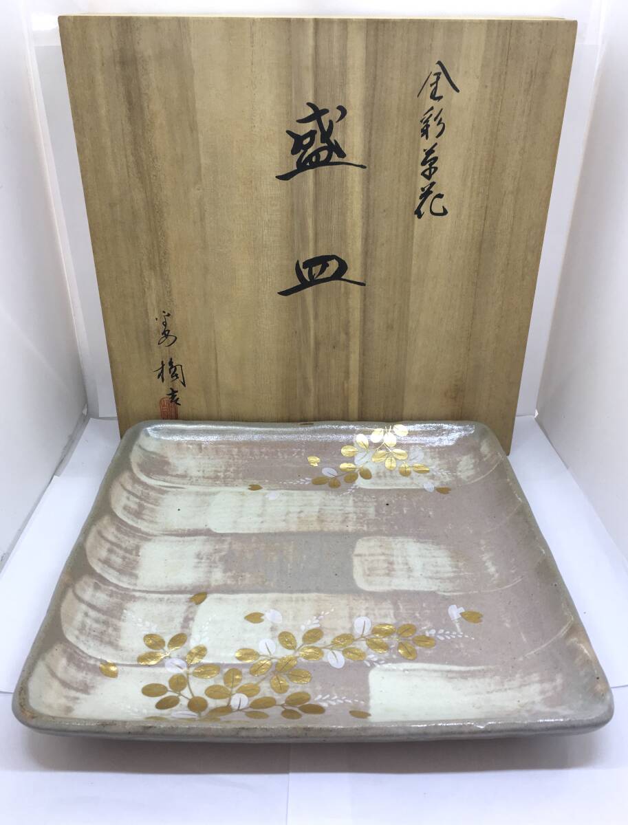 - 【未使用保管品】たち吉 金彩草花 盛皿 角皿 大皿 桐箱 共箱