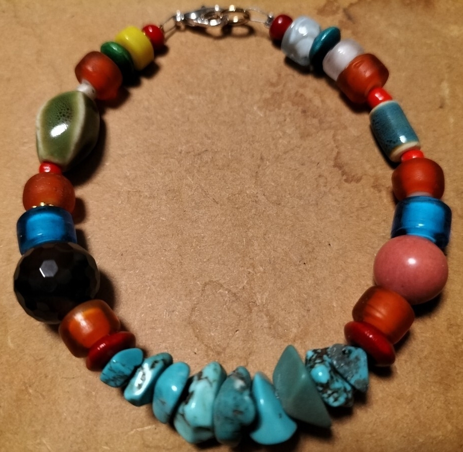 - インディアン ネイティブ ヴィンテージ ターコイズ ブレスレット ナバホ ズニ オールドビーズ とんぼ玉 メキシカン サントドミンゴ 極太